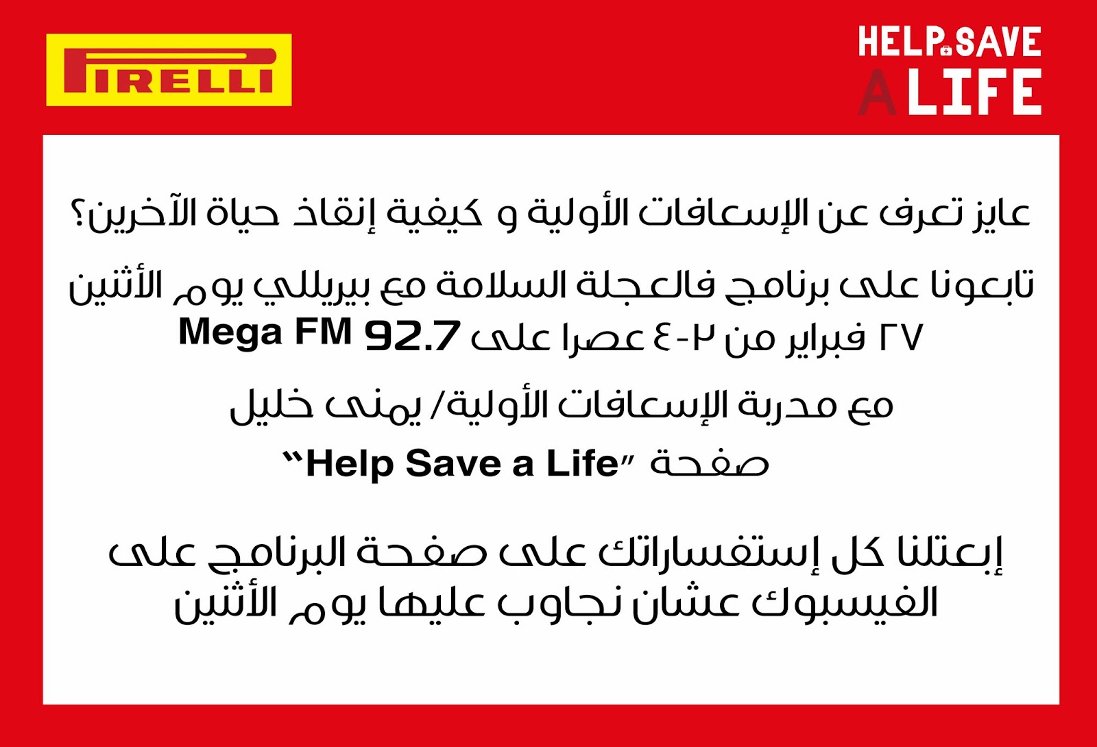 December 10, 2020January 25, 2014 by Y.K. عايز تعرف اكتر عن الإسعافات الأولية؟ تابعونا عى الراديو مع برنامج فالعجلة سلامة مع بيريلى. وماتنسوش تتابعونا على صفحتنا “انقذ حياة”.