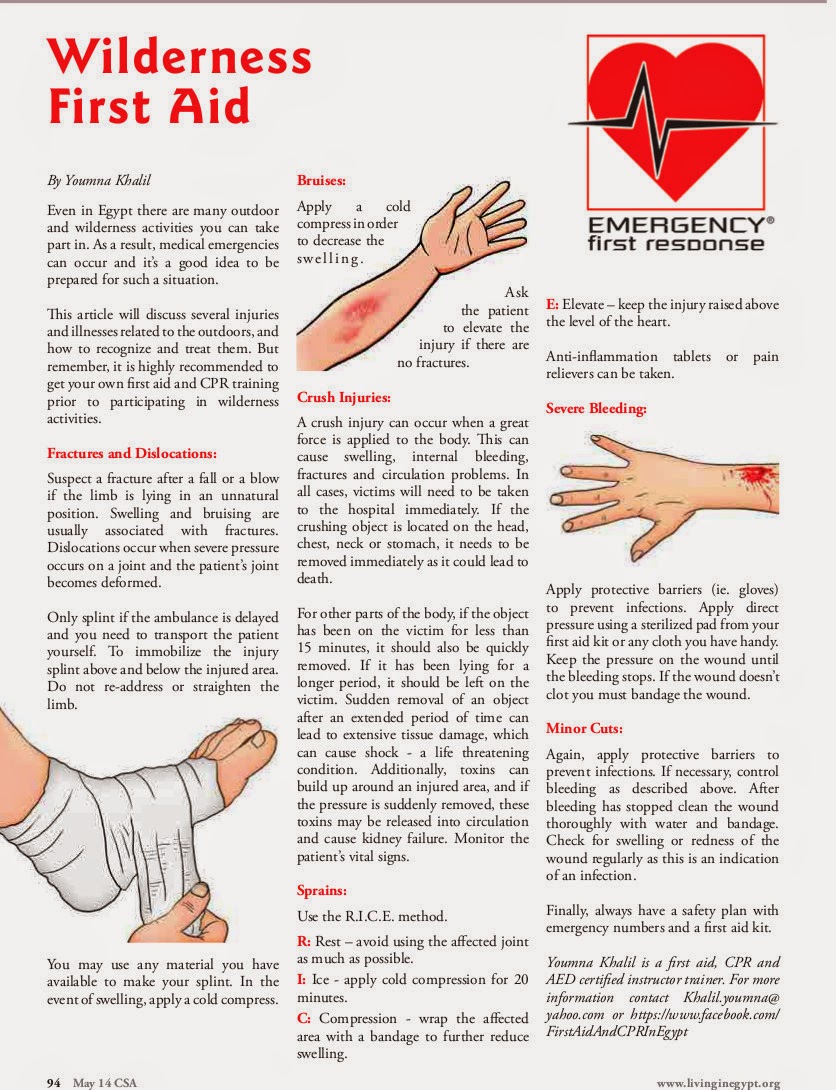 Even in Egypt, there are many outdoor and wilderness activities you can take part of. As a result, medical emergencies can occur and it is best -as a precaution- to be prepared for such situation.